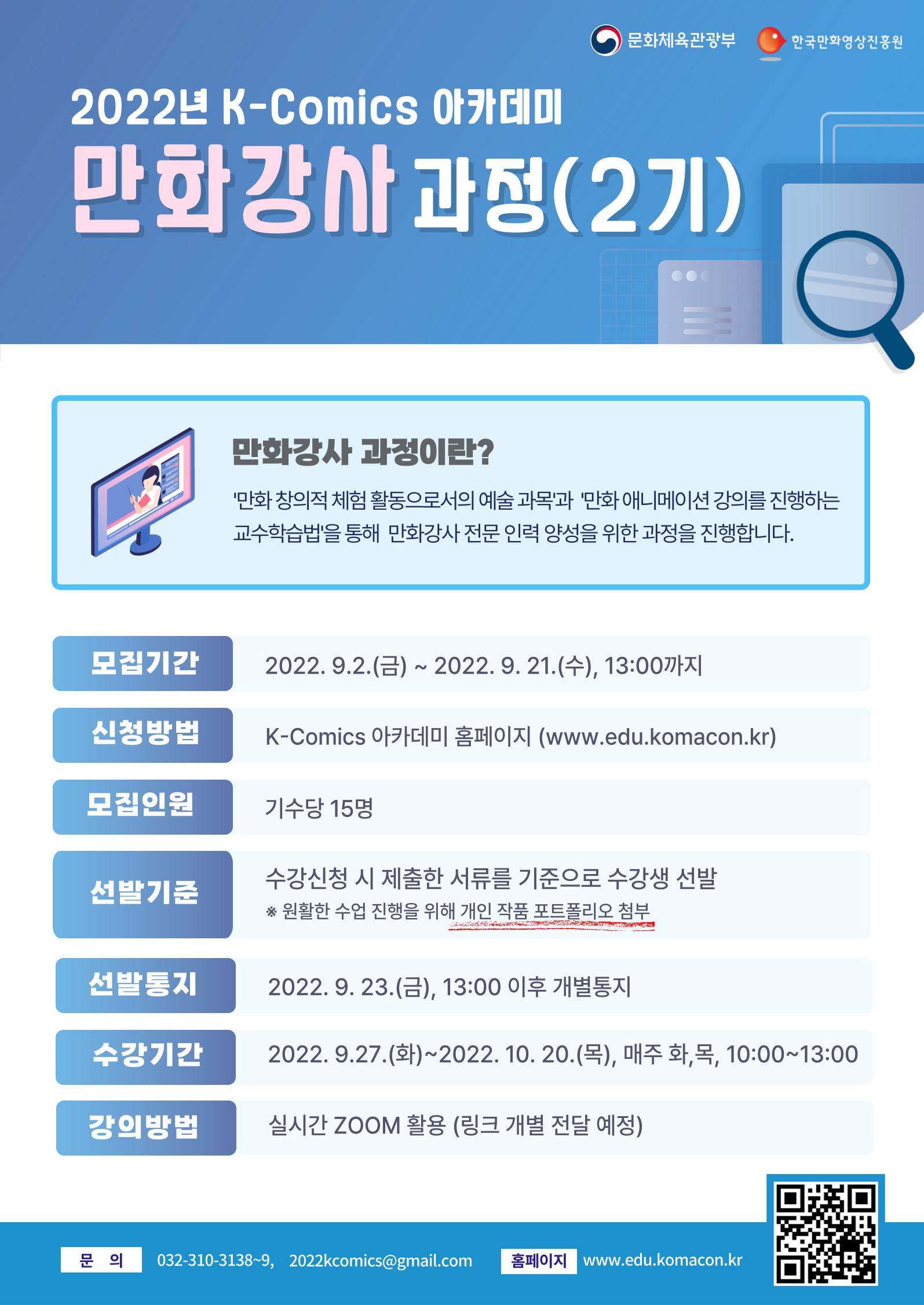 [한국만화영상진흥원] 2022 K-Comics 아카데미 만화강사 과정 2기 수강생 모집