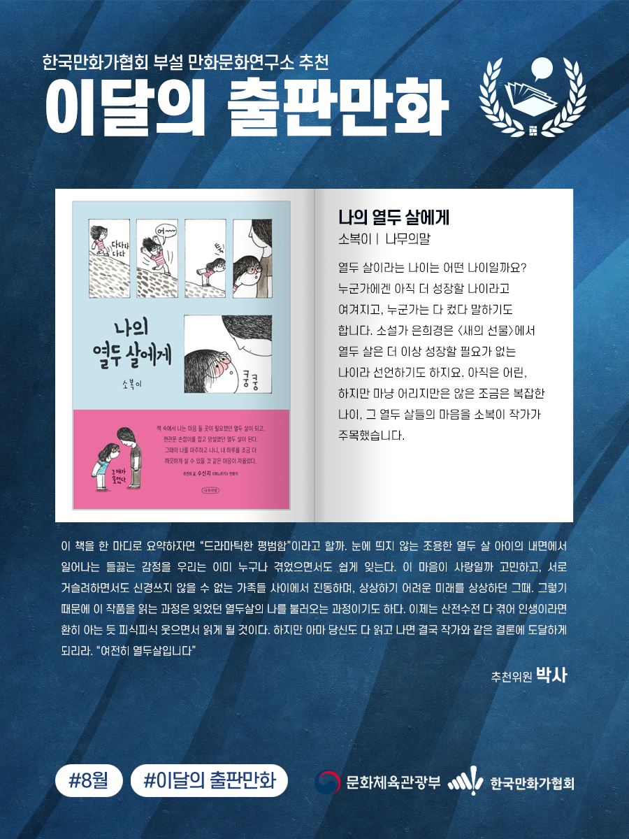만화문화연구소 8월 <이달의 출판만화> 선정, 발표!