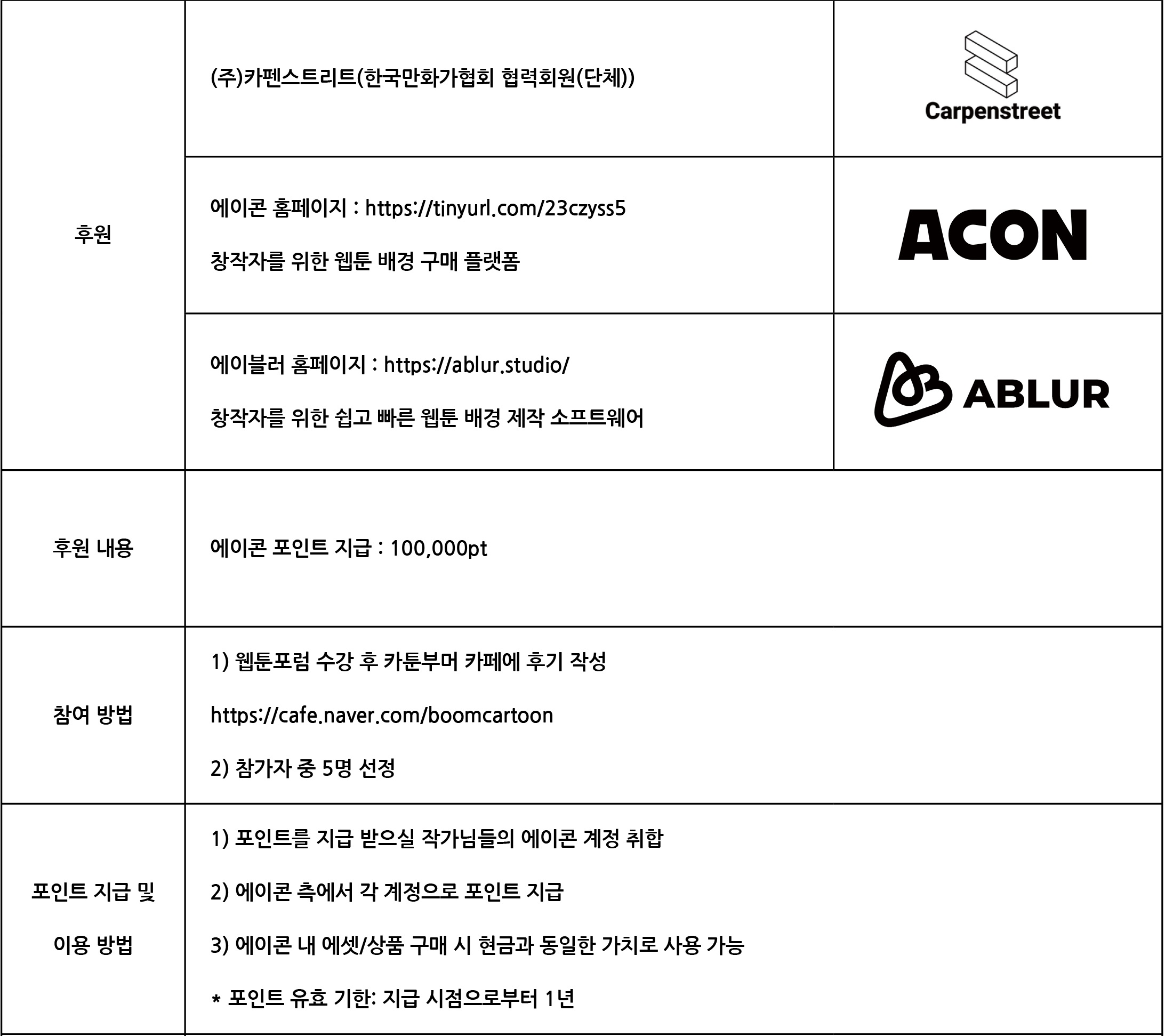 ※ 웹툰포럼 참석자 대상 특별 이벤트 : 에이콘 50만 포인트 지급 ※