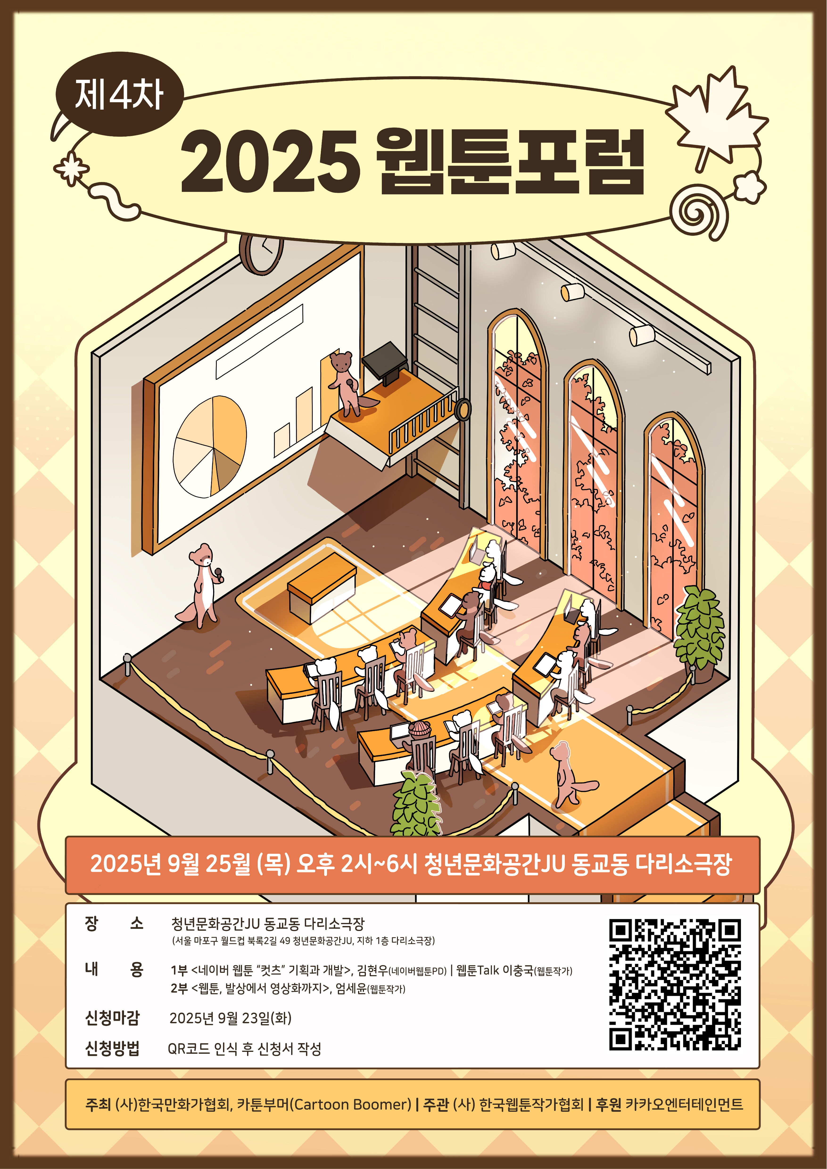 2025년 제4차 웹툰포럼 신청 안내(한국만화가협회 및 한국웹툰작가협회 회원, 카툰부머 회원 대상 / 참가자 혜택 제공)