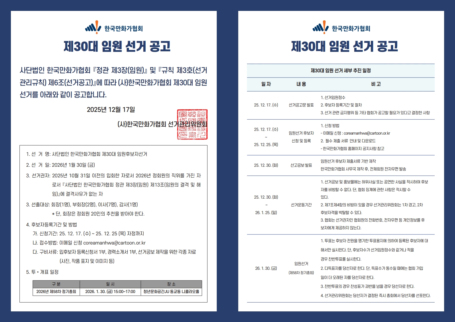 제30대 임원 선거 공고 (임원 후보자 등록 및 절차 안내)