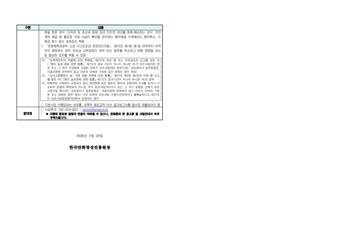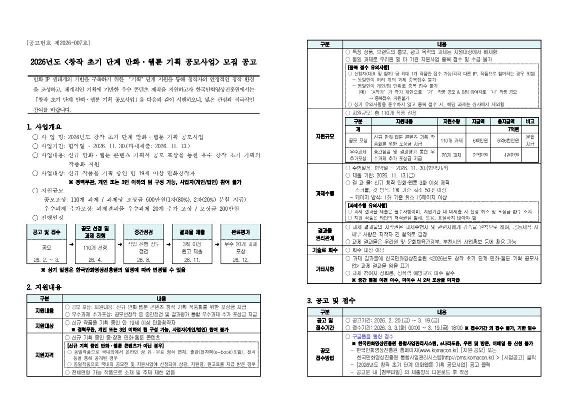 [한국만화영상진흥원] 2026년도 <창작 초기 단계 만화 · 웹툰 기획 공모사업>모집 공고